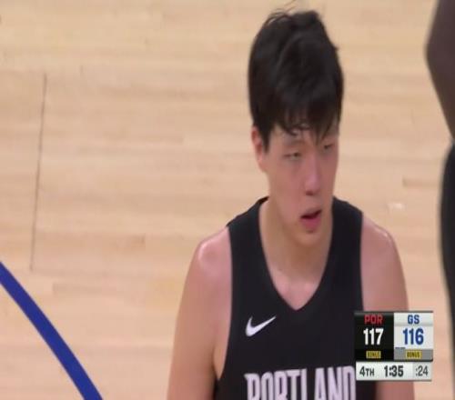 下半场开始,杨瀚森的状态终于有变化,上场不到1分钟,就与卡马拉配合,篮下接球轻松完成放篮,这也是杨瀚森的季前赛第一分,投进之后勇士暂停,杨瀚森下场时还露出了非常温暖的微笑。