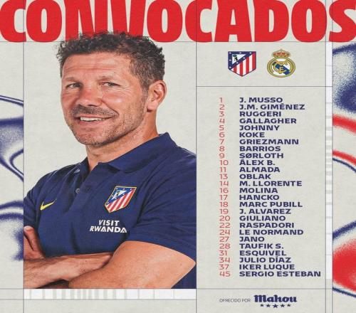 北京时间1月9日凌晨3点,西班牙超级杯半决赛,马竞将对阵皇马。赛前,马竞官方公布了球队参加西超杯的球员名单。