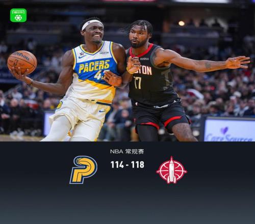 第四节步行者马图林拿下12分,火箭申京拿下8分,最终步行者114-118不敌火箭
