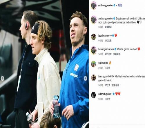 在与切尔西2-2战平的比赛后,纽卡前锋安东尼-戈登更新了个人社交媒体,其中的一张配图引起了球迷们的注意。安东尼-戈登表示这是一场很棒的足球比赛,我们本应该取胜,但我们要有更